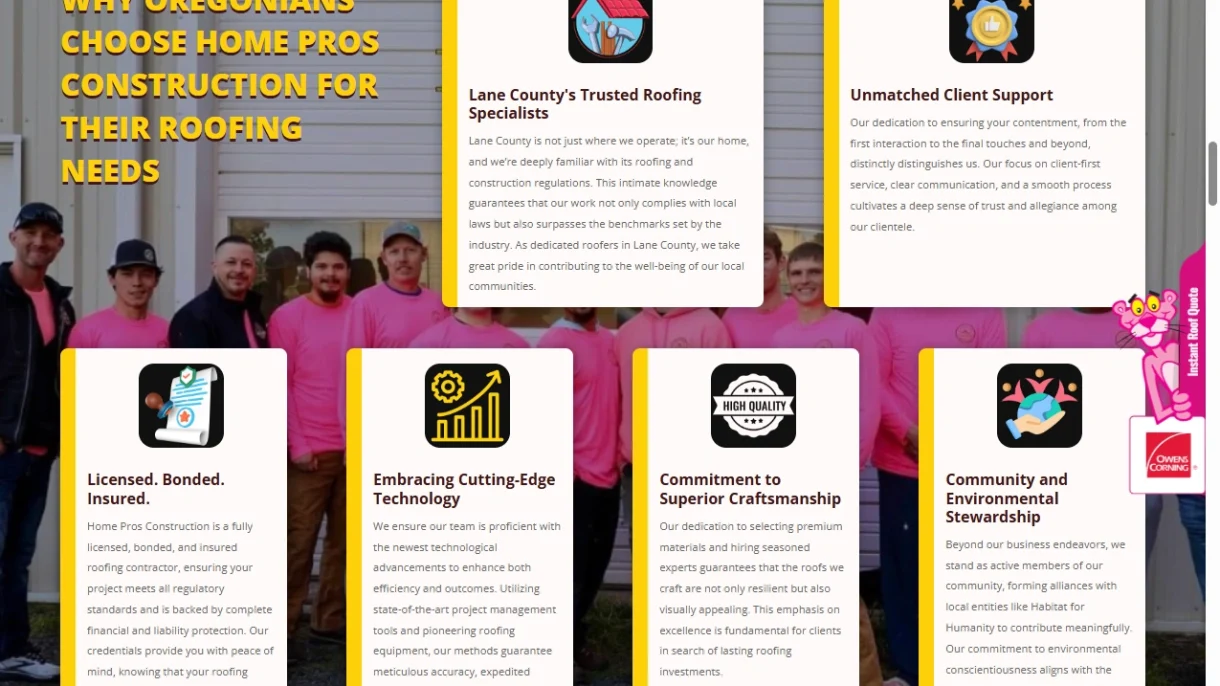 ✅ Final Outcome: Home Pros Construction’s new website now stands out in a competitive Oregon roofing market, converting more leads, showcasing their expertise, and reinforcing their reputation as Lane County’s trusted home improvement experts.